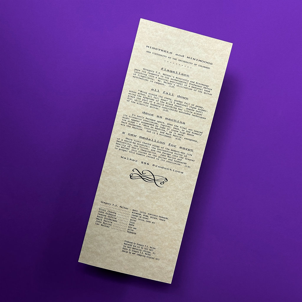 The latest album Freedom To Spend has plucked from obscurity, Minstrels and Minimoogs collects Gregory T. S. Walker’s compositions for a 1988 multimedia performance at the Fiske Planetarium in Boulder, Colorado. Across four tracks that weave atmospheric electronics, blaring synth melodies, and acid-drenched guitar work, Walker and his band create moments of total surprise—like the operatic peak of “All Fall Down” and the fiddle that cuts through the electronics on “Deus Ex Machina.” The performance goes out with a bang, too on “A New Medallion For Egypt,” a bright, almost New Wave-y closer that all these years later truly feels like lightning in a bottle.