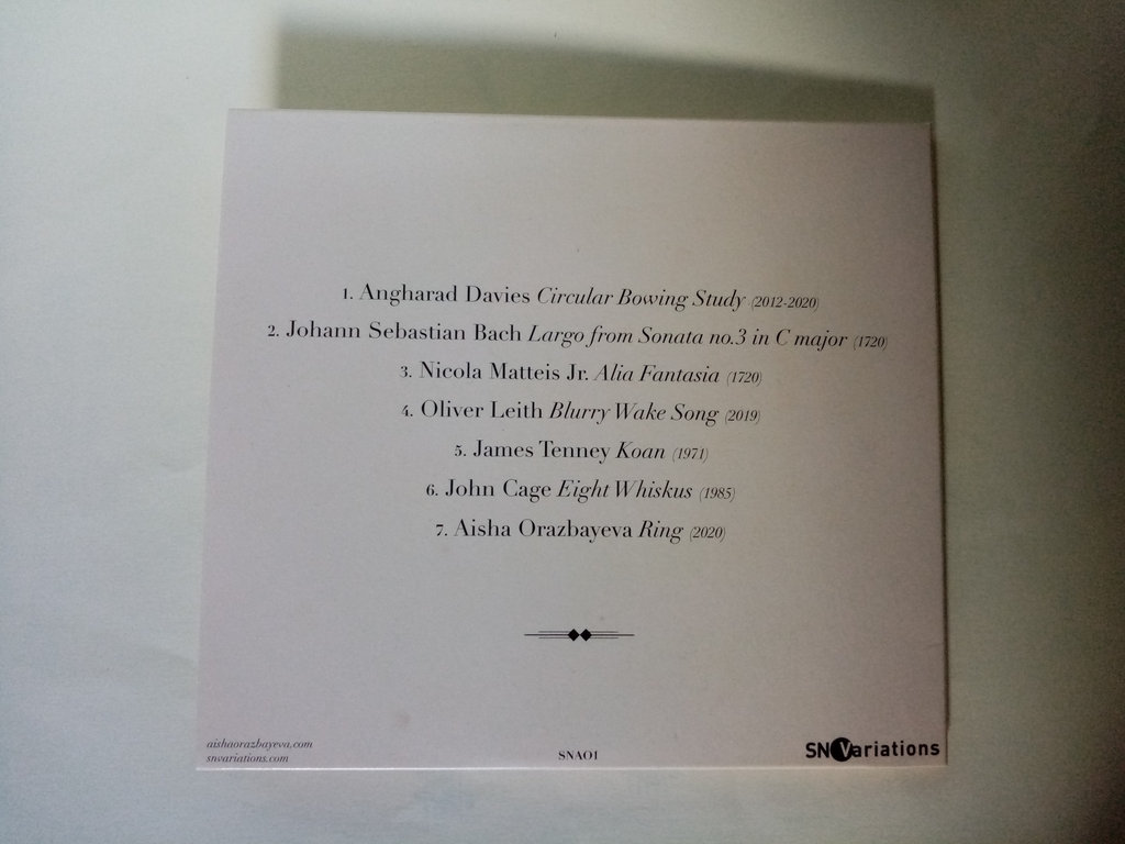 The remarkable Kazakh violinist Aisha Orazbayeva used the early days of the COVID-19 pandemic to record this album, gently re-emerging from a two-year absence precipitated by the birth of a child, as well as countering the lack of performance opportunities. Recorded in a makeshift studio in a remote village near Beziers, France, the solo recording reaffirms the violinist’s stylistic agnosticism, allowing listeners to make connections between baroque and 20th century experimental music.