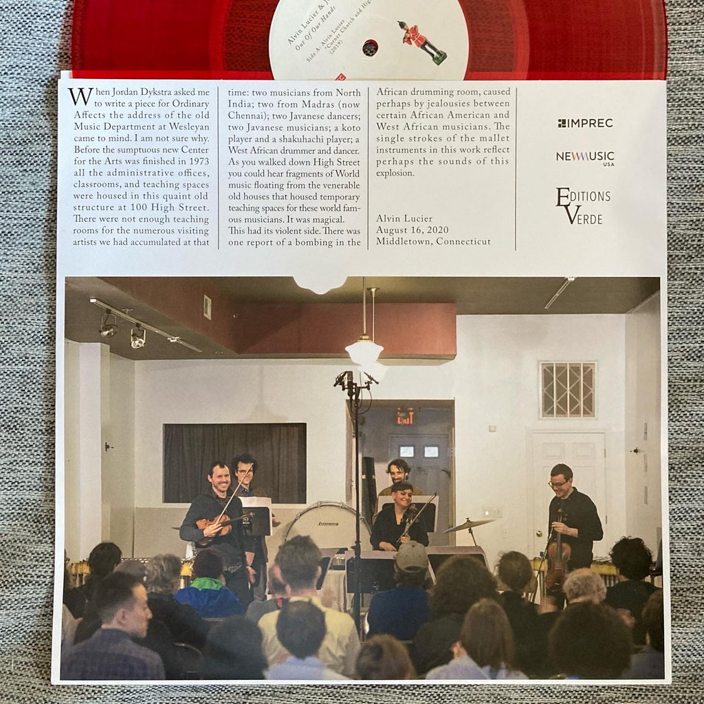 It’s hard to imagine a superb ensemble like New England’s Ordinary Affects existing without the endless discoveries and psychoacoustic thrills of composer Alvin Lucier, who died at age 90 last December in the midst of an ongoing reassessment of his indelible work. In fact, in his liner note essay the group’s violist Jordan Dykstra, who composed one of the two works on this album, paraphrases ideas shared in an informal talk by cellist and close Lucier associate Charles Curtis. Dykstra discusses the various phenomena that impact the way a composition is realized—concerns that guided Lucier for decades. The titles of these two commissions both reference Middletown, Connecticut—home of Wesleyan University, where Lucier taught and where Dykstra studied.