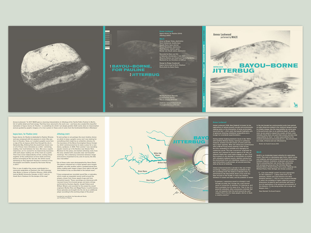 The work of Annea Lockwood extends generosity to its performers, and the two graphic scores featured on this fantastic rendering by the Amsterdam ensemble Maze reinforce that the trust she offers her interpreters pays grand dividends. “Bayou Borne” is dedicated to her close friend Pauline Oliveros: the graphic score uses maps of six different bayous that flow through Houston, Oliveros’s home. The performers are asked to translate those shapes into sound as the lines reach a confluence of duos, trios, and full group sound, expertly weaving individual expression into an ensemble approach that requires the sort of deep listening its subject devoted herself to. “Jitterbug” also turns to naturally-occurring lines with a graphic score based on markings Lockwood discovered on rocks she found near Glacier Park in Montana. Each musician plays these parts within prescribed order and duration as field recordings of “aquatic bugs and terrestrial insects,” from the same region, per the liner notes, and pre-recorded sounds made from percussion and piano unfold in tandem. The members of Maze deliver stunning realizations, particularly on “Jitterbug,” which sounds fuller and more alive, teeming with the natural world’s vitality, than any previous account I’ve been lucky enough to hear.