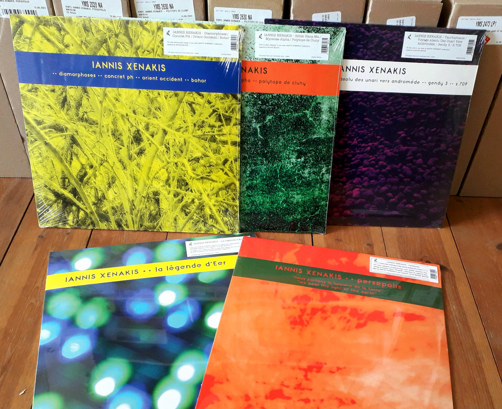 Iannis Xenakis was one of the most prolific and radical composers of the 20th century, a musician, architect, and mathematician whose ideas and innovations continue to impact contemporary music of many stripes. This essential five-CD set collects the entirety of his electroacoustic output, beginning in 1957, a decade after he left his native Greece for France, to his final purely electronic pieces from 1992. While all of this material has been available over the years, this new collection brings it all together in a manner that really illustrates his creative restlessness and artistic prescience. (The set also presents a more accurate version of his 1972 masterpiece Persepolis after previous releases got the tape speed wrong or left a pause between the two tapes containing the full work.)
