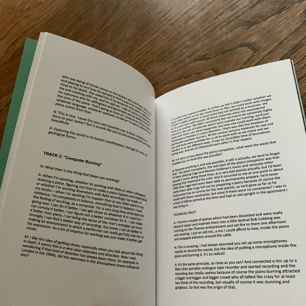 After artists Noel Meek and Mattin discovered their mutual admiration of renowned composer and field recordist Annea Lockwood, they decided to craft an homage to her and her work. At the end of 2020, the duo conducted a wide-ranging interview with Lockwood via Skype that was then used as the score for this four-part album. “Das Ding an sich” is a recording of the conversation itself, manipulated into constantly morphing digital noise from which their three voices approach and recede. “Computer Burning” is a 21st century update of Lockwood’s 1968 piece Piano Burning in which an upright piano is set alight; in Meek and Mattin’s version, a laptop was burned outside Funkhaus in Berlin and closely miked to record its pops and crackles. Lockwood is also known for her sound maps of rivers like the Danube, Hudson, and Housatonic. Here, Meek uses hydrophones to record the Ōtākaro River in Ōtautahi (Christchurch), New Zealand, where Lockwood grew up and which was largely abandoned after the 2011 earthquake. Finally, portions of the interview are sung by a small choir in St. Cuthbert’s Church in Ōhinetahi, Horomaka. As Lockwood writes in the liner notes, “This album is a very special gift, and honor, touching on varied aspects of my work but taking off from them in richly surprising directions.”