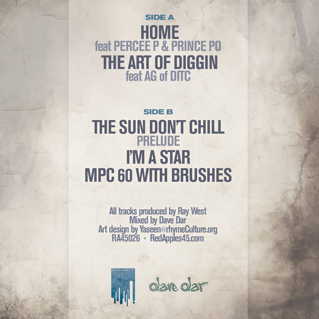 Supastar Dave Dar has worked as an engineer for artists as renowned as Common, Santana and Mary J. Blige for nearly two decades now. With Sun Don’t Chill, he steps from behind the boards, rhyming over a selection of beats hooked up by Ray West. Veteran mic men Percee P and Prince Po pass through to add lyrical gravitas to the nostalgic “Home,” but the soul of the project is “Art Of Diggin’,” a mellow team-up with A.G. that breaks down the science of hunting for samples while giving a salute to the legendary Breakbeat Lou and other vinyl collectors.
