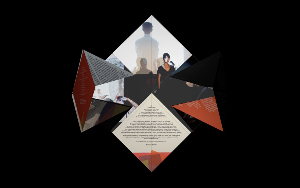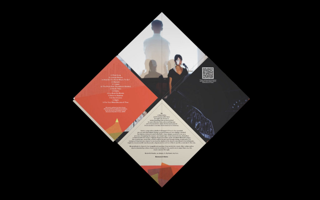 What’s most arresting about Intimate Strangers is the way its components coalesce. There are times the spoken word, vocals, and instrumentals are woven together in a thick harmonic fabric, impossible to break, and there are other times when everything seems to hover, never touching, wavering delicate and vulnerable. Their ultimate strength is their peaceful coexistence, each maintaining an equal space and voice, making their presence felt no matter which element is inching toward the front of the stage. The voices of Sara Serpa, Emmanuel Iduma, Sofía Rei, and Aubrey Johnson join Matt Mitchell on piano and Qasim Naqvi on modular synth on this riveting project inspired by Nigerian writer Emmanuel Iduma’s latest book A Stranger’s Pose.