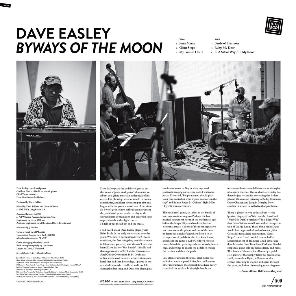 For some of you, the moment I remind y’all that Dave Easley is a member of the Brian Blade Fellowship is the moment you’ll immediately snap this album up. And you should! The lap steel guitarist has a range that extends far beyond the intoxicating nu-jazz of the Fellowship, and it’s on full display on Byways of the Moon. Along with Cathlene Pineda on Wurlitzer electric piano, Chad Taylor on drums, and Dave Tranchina on double bass, Easley performs renditions of songs from across the spectrum of music, including tunes by John Coltrane, Carla Bley, Led Zeppelin, Thelonious Monk, and an intriguing mash-up of Brian Wilson’s “In My Room” and the Zawinul/Davis classic “In a Silent Way.”