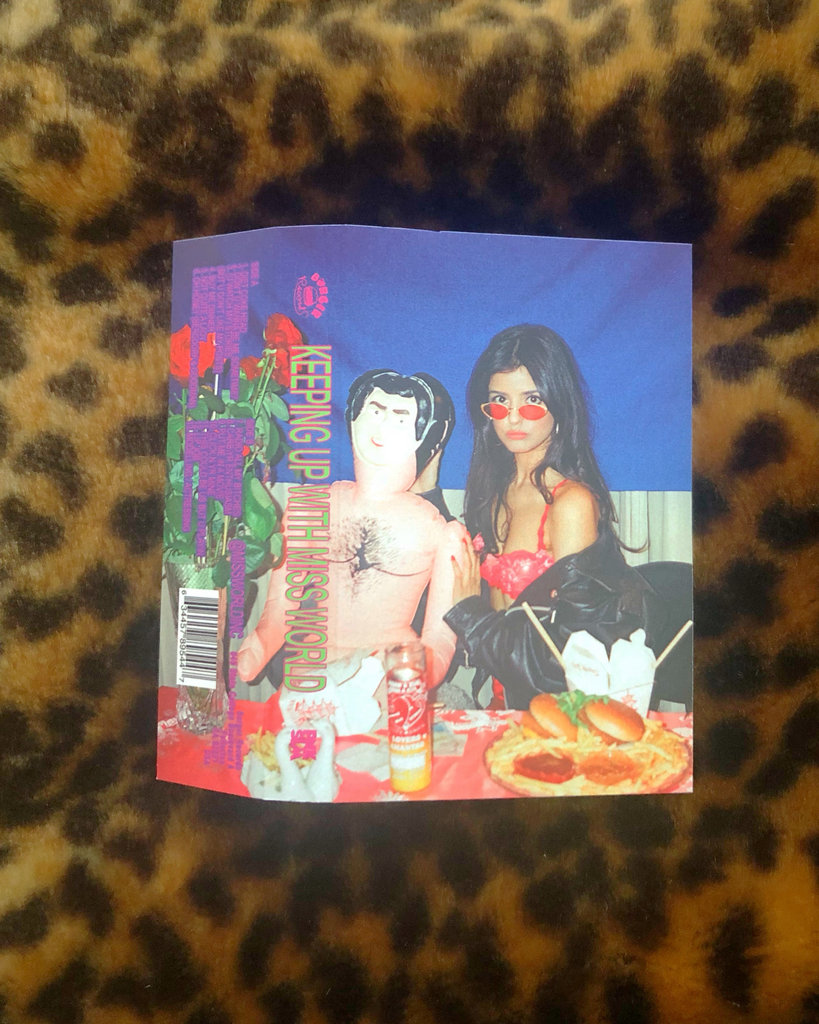 I have a thing for puns, so the fact that Miss World chooses to wrestle with self-image and attack the diet-industrial complex on a song called “Carb Your Enthusiasm” won me over from the get-go. The fact that it’s one of the grimiest and most giddily blown-out songs I’ve ever heard in my life pushed it over the top. That’s the operating m.o. For all of Keeping Up With Miss World: start with lyrics that address food anxieties, douse with humor, and run all of them through 500,000 distortion pedals. The first lyric on the record (which is in a song called “Diet Coke Head,” no less) is: “Give me sugar and fat and salty/ I want that burger, I want him in me,” and the ensuing half hour are equal parts exuberance, decadence, and nose-thumbing at impossible societal standards. Nothing on Keeping Up sticks around longer than it has to: only one song clocks in over three minutes—just barely—and the rest are in and out in around two. “Put Me in a Movie” is a girl-group song plunged in sticky shellac; “Click and Yr Mine” is greaser pop with an emphasis on the “grease,” and the chainsaw guitars on “(U Watch My) Stories (But U Don’t Like My Posts)” threaten to cut the whole thing into ribbons. The whole thing is bursting with #IDGAF; it’s just plug in, turn up—way, way, way up—and engage middle finger.