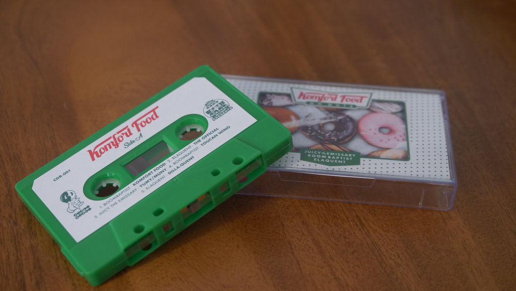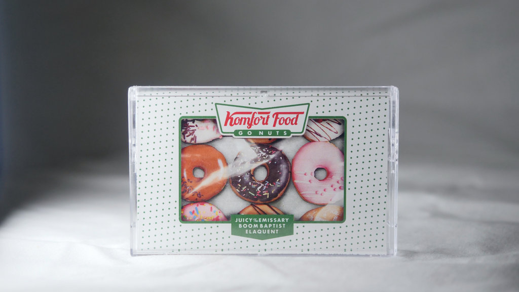 Homage can feel derivative—as though an artist is trading on a predecessor’s esteem to avoid the challenge of innovating. With Komfort Food, BoomBaptist, Elaquent, and Juicy the Emissary shoulder the daunting task of re-working samples from revered J Dilla beats. But they never lapse into paint-by-numbers laziness, instead retaining their distinct voices while inventively flipping multiple sonic references in a single beat. On “The Official,” Elaquent drops alternately halting and rolling drums over the sample Dilla used on Champion Sound before genuflecting to the original version of “The Red.” “Toucan Wing” finds Boombaptist stretching and chopping the sample from “Two Can Win” with as much reverence as thumping and funky abandon. And Juicy the Emissary turns “So Far to Go” into a blue yet banging slice of quasi chipmunk soul (“Far 2 Go/The Light”). Each beat on Komfort Food tips a Detroit fitted cap to Dilla, then throws it to the wind.