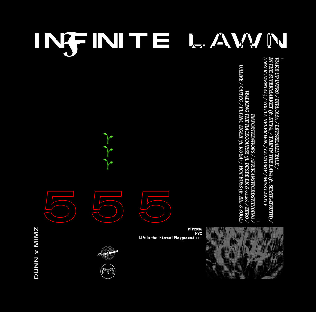 Infinite Lawn begins with a meditative murmur. On “WAKE UP (INTRO),” a dazed soul loop repeats the phrase, “It was only a dream.” As the sample echoes to a halt, the song “DIPLOMA” slinks into life and ushers New York City figures Mimz and Dunn onto a train at the Myrtle Avenue subway stop accompanied by a soothing brass riff and hypnotic tripled-up snares. “It’s only up to me just to talk how I feel/ Yo, I walk on the stilts/ We lack emptiness while you only got zilch/ How you feel?” raps a carefree but confident Mimz, exposing an art and life philosophy whose abstractions fall in the grand lineage of De La Soul safeguarding their own metaphorical lawn from potholes back in the late ‘80s. As Mimz passes mic privileges over to Dunn, his rhyme partner embarks on sprints across the world in search of existential answers, before seeming content to shrug and declare, “We make moves and pay the rent and a bunch of other shit.”