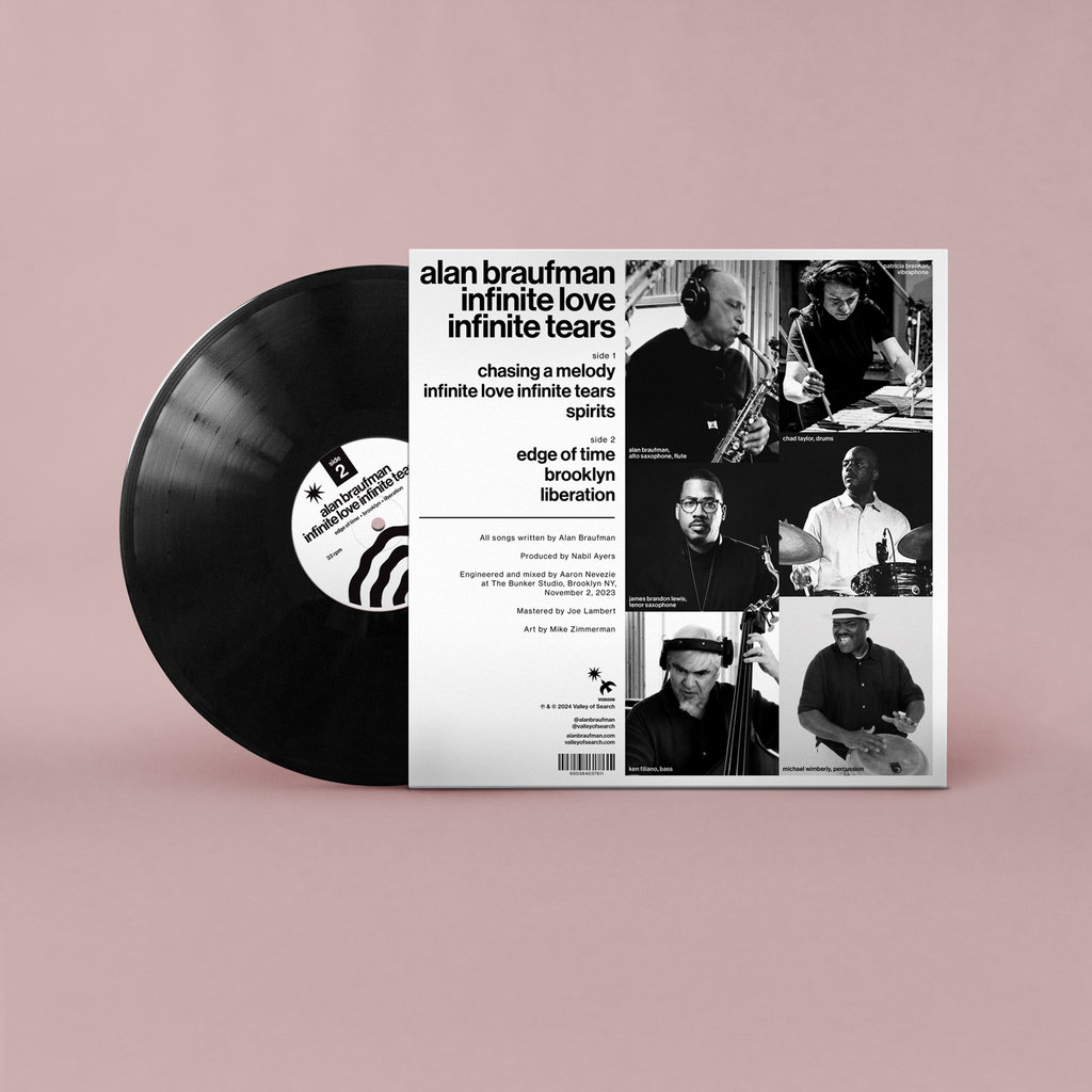 Though he spent much of the next 40 years out of New York, touring with the likes of Carla Bley, the Psychedelic Furs, and Philip Glass, he has experienced a creative resurgence in the past few years. Recent collaborators include tenor saxophonist James Brandon Lewis, clarinetist/vocalist Angel Bat Dawid, and vibraphonist Patricia Brennan (who plays on Infinite Love, Infinite Tears). If anyone livaing knows what free jazz is, it’s Braufman.