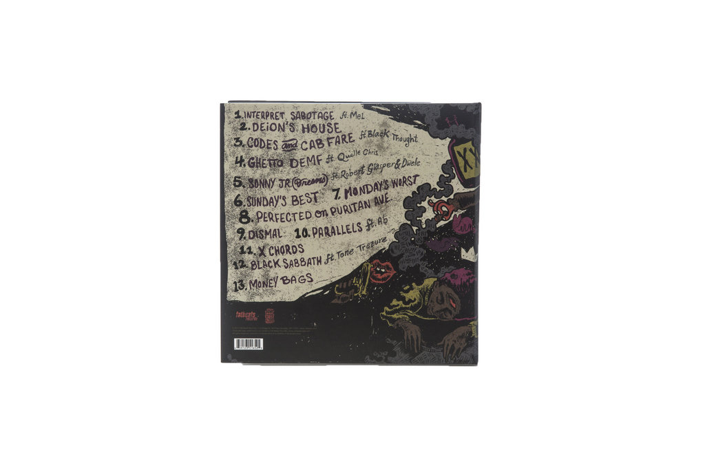 In a recent conversation, Black offered me a loose guide to the record, emphasizing how you can interpret or cherry-pick meaning. He started with the album art – a series of sprawling, bizarro fantasy drawings by Dallas, Texas artist Joonbug. “There’s so many details to the illustration, it’s like that with the music. Every day there’s a different part of the artwork that I like. Some days it’s the Grim Reaper, or the goblin-lookin’ character, some days it might be in the upper left corner, that hooded monster masked dude, or sometimes it’s on the back, with the character drawn in the sleep state, with the third eye on his head. There’s so many details, it changes day by day.” Black muses about the potential for narrating a dream state, “You could be walking down the street one moment, and falling off a building the next.”