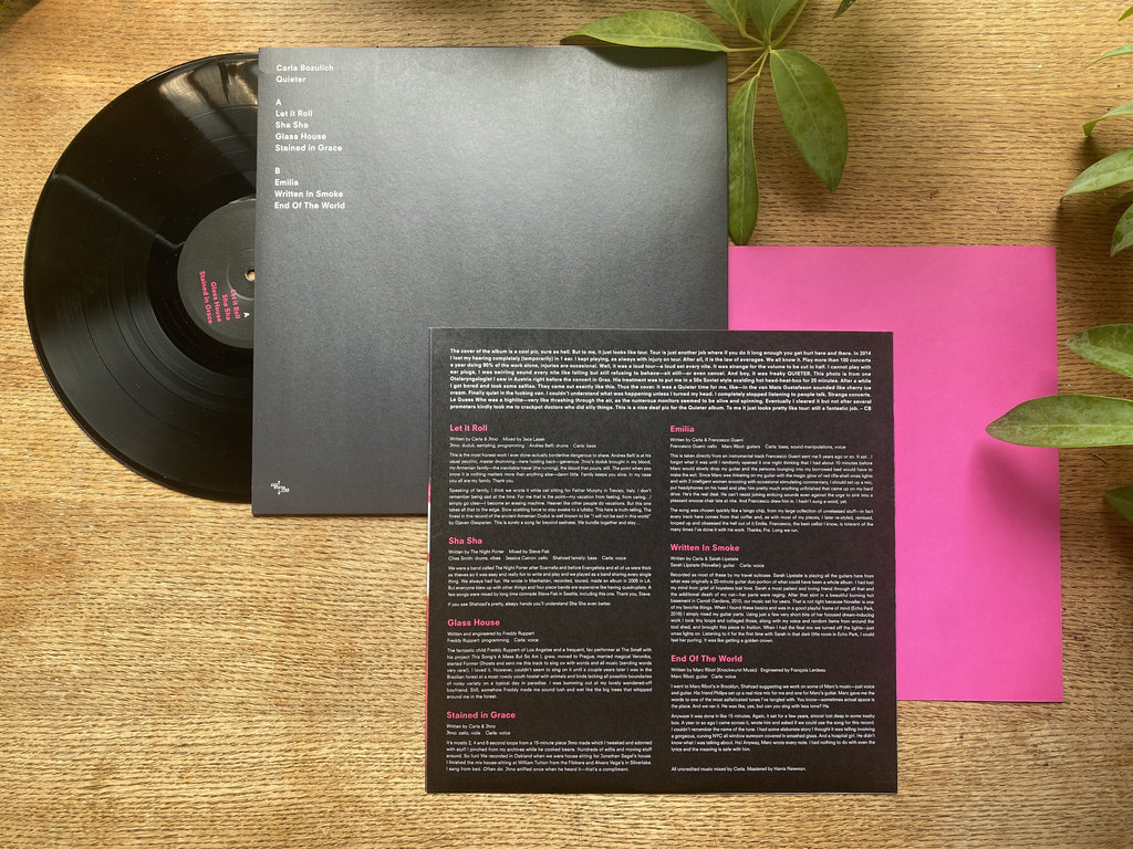 Quieter was assembled from one-off collaborations and outtakes, with almost every song featuring a completely new set of collaborators. Although their origins are disparate, these songs form a cohesive return to the otherworldly ambient pop half-glimpsed on Evangelista. Only a few of them include any percussion; Bozulich discards all but the most essential pieces of each song. From the skittering, chiming electronics on “Glass House,” programmed by darkwave artist Freddy Ruppert, to Marc Ribot’s jazzy guitar on the hushed torch song “End Of The World” and the droning duduk (an ancient Armenian woodwind instrument) played by John Eichenseer on “Let It Roll,” Quieter’s eclectic sonic palette is well worth a listen.