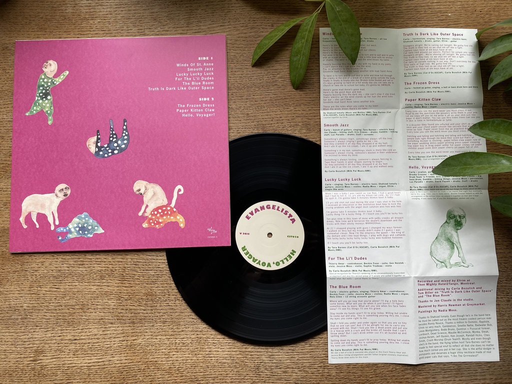 The debut album by Bozulich’s band Evangelista is a harrowing, experimental opus. She returned to Montreal to record Hello, Voyager, and Evangelista (the band) features an expanded version of the already-formidable personnel lineup from Evangelista (the album). It opens with a desperate invocation to “St. Anne who’s gone mad” over scraping strings, and confidently leaps between windswept blues, incandescent noise rock, and unsettled chamber music as it mirrors Bozulich’s searching, urgent lyrics. The band’s maximalist approach frequently conjures up walls of sound that could overpower a lesser vocalist, but Bozulich’s searing vocals never falter as she slinks and screams her way through her most intense album yet.
