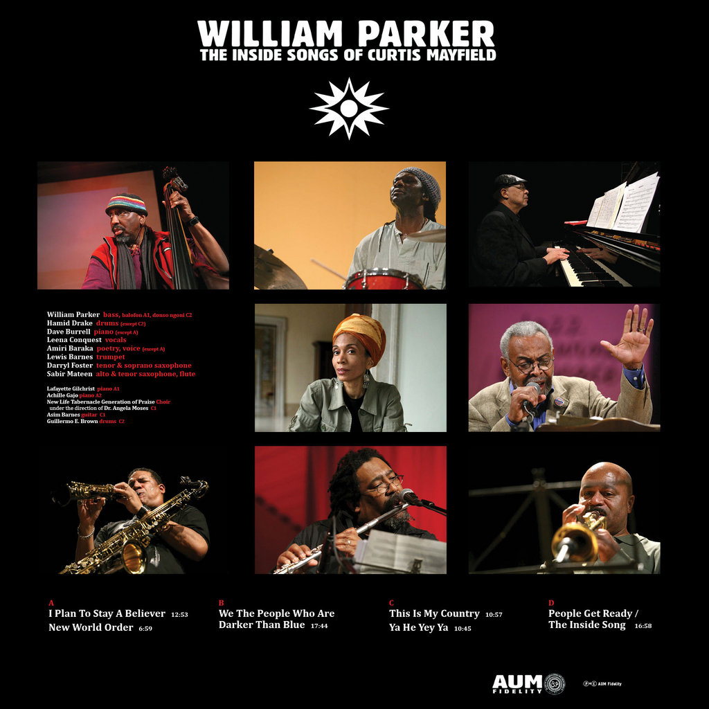 The other two William Parker Orchestra albums of note use the well-known catalogs of other composer-musicians for inspiration. At various points during the first decade of the new century, Parker staged concerts exploring the music of the R&B master Curtis Mayfield, beginning with a grand affair in Paris involving a 90-piece children’s choir. Two selections from that show appear on I Plan To Stay A Believer: The Inside Songs of Curtis Mayfield, but the cherry-picking of nine others must have been brutally difficult, given the variety and quality control.