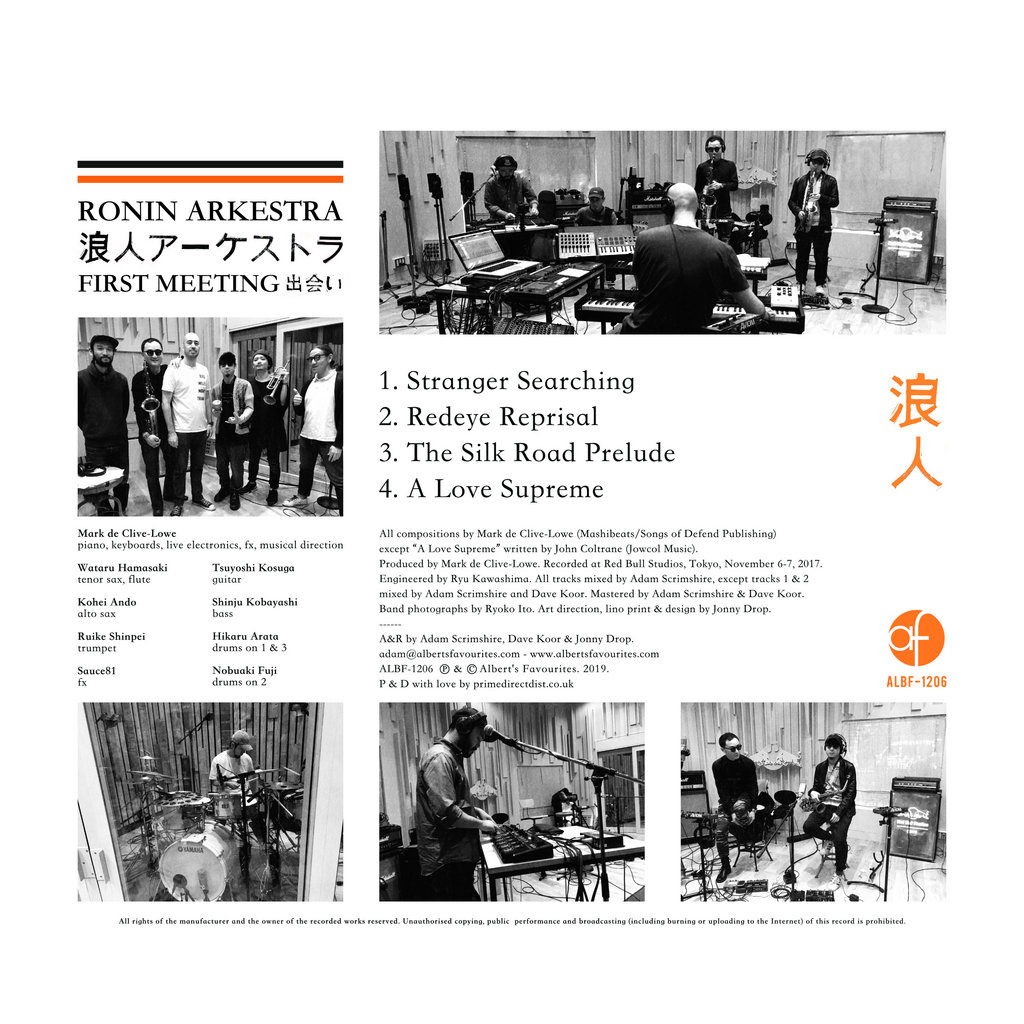 Borrowing “Arkestra” from the late, purportedly Saturn-born bandleader Sun Ra, keyboardist Mark de Clive-Lowe and Rōnin Arkestra blend futuristic beat-based music with echoes of ’60s spiritual jazz and ’70s fusion on their debut EP First Meeting. The Tokyo collective boast players at the forefront of Japan’s jazz and electronic music scenes, including guitarist Tsuyoshi Kosuga and beatmaker Sauce81, with robust horn and rhythm sections urging the music on. Building on his extensive experience in Los Angeles and the U.K., de Clive-Lowe (of mixed Japanese and New Zealander descent) is poised for similar impact in Japan. Their debut full-length is due out later this year.