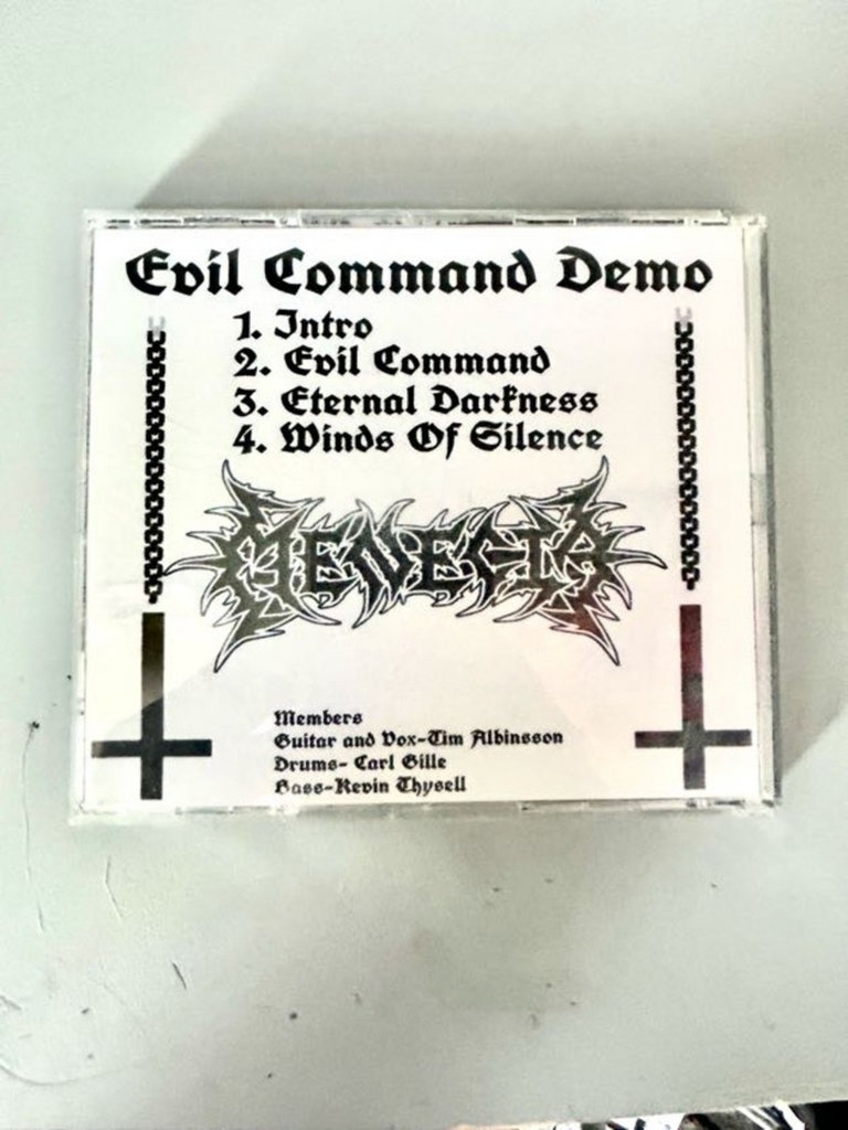 Hailing from the small northern town of Sandviken, black/thrash specialists Menecia are perhaps the most geographically isolated band in the current Swedish scene. But with just a pair of demos under their belts, this trio of 16-year-olds is managing to make waves down in Stockholm. (Eternal Evil’s Tobar lists them as one of his favorite new Swedish bands.) The demos are rough around the edges and almost confrontationally raw in fidelity, but Menecia are already writing great songs. Evil Command, from this May, will reward those who can get on its wavelength with a strange, almost Sabbat-like atmosphere.