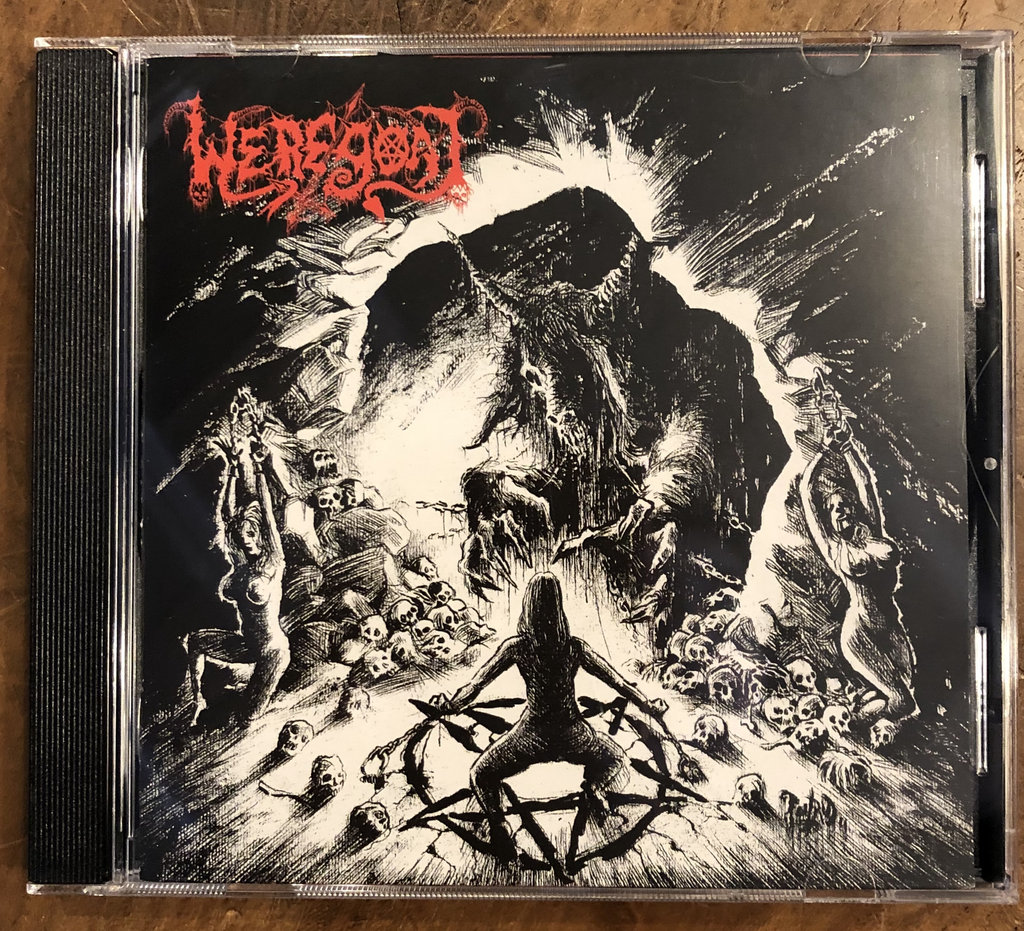 Its cover art might depict three bound, naked women in risqué poses, awaiting their grisly demise at the cloven claws of a hideous goat beast, but make no mistake: The latest effort from Portland blackened-thrash crew Weregoat is actually a celebration of sex positivity, with a sinister twist. Which is to say, these eight songs are mostly devoted to capital-F fucking — blasphemed unions between succubi and killer women with “nuclear cunts” (now that’s what I call pussy power!), gore-stained orgies and nocturnal hunts. The incendiary, Bathory-esque riff onslaughts and howled, lycanthropic vocals on standouts like “Invoke the Black Oblivion” and “By the Light of the Moon” similarly bely their staunch devotion to the id, wasting no time to get to the down and dirty. Light the candelabras, bust out the flogs, pour you and your sweetie two tall glasses of blood, and get cozy.